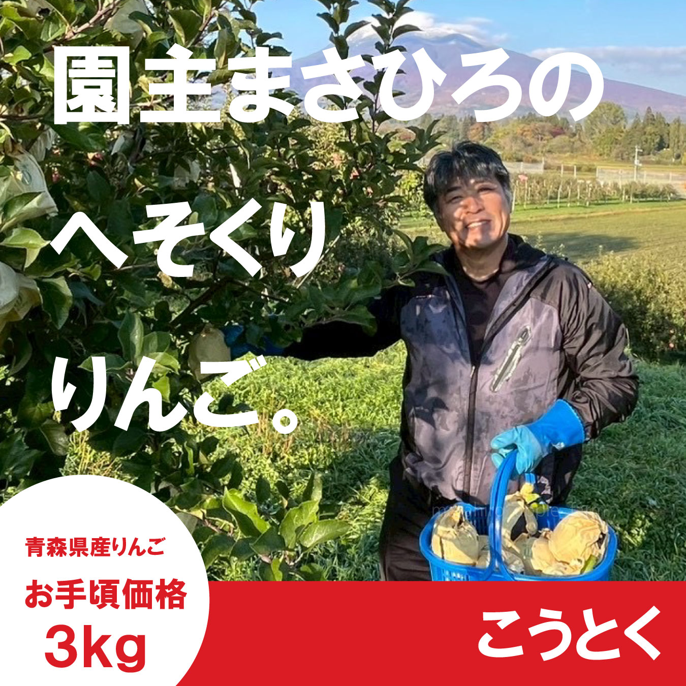 ☆園主のへそくりりんご☆ こうとく お手頃価格3kg ≪送料込≫