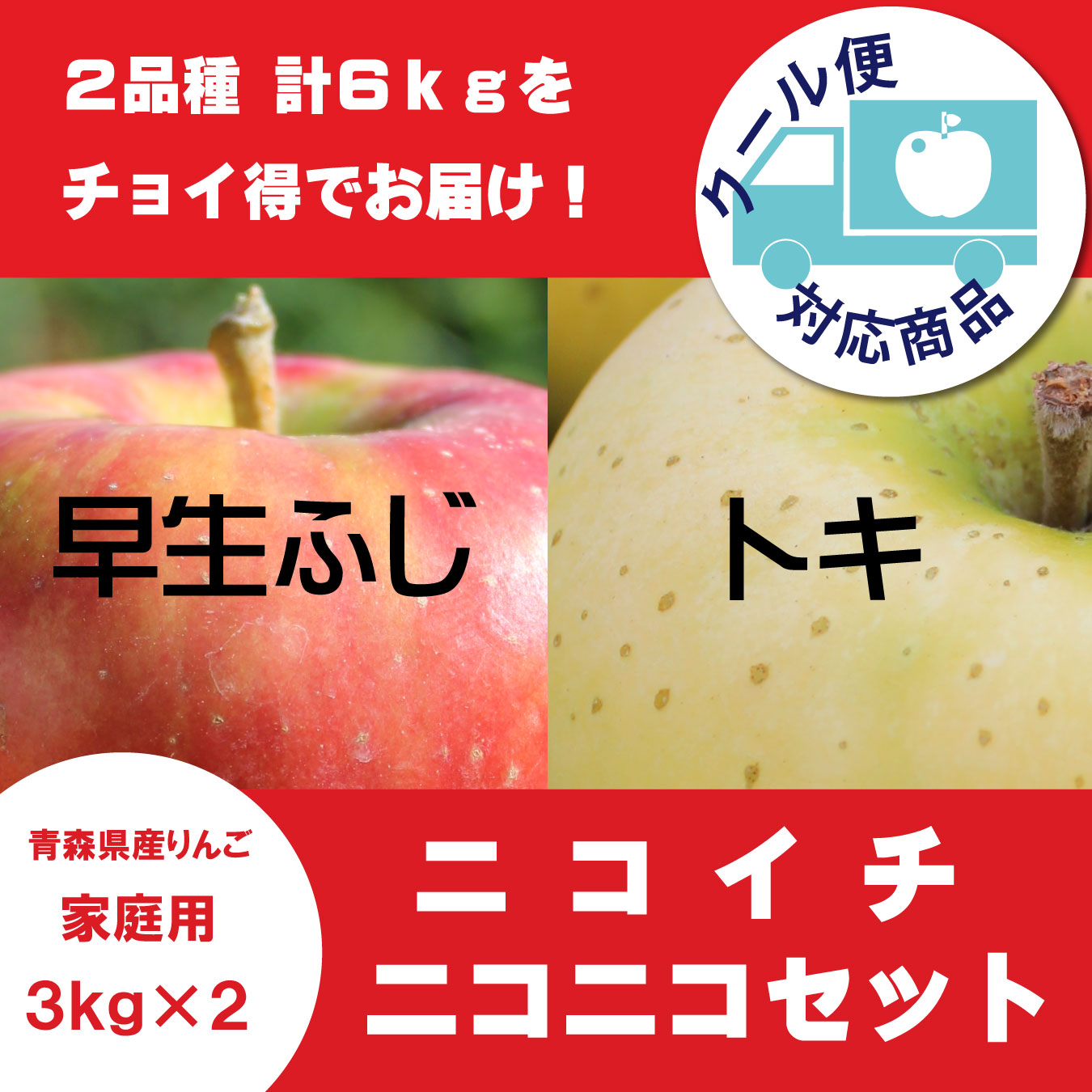 【ニコイチセット】早生ふじ&トキ 家庭用 3kg×2箱 ≪送料込≫